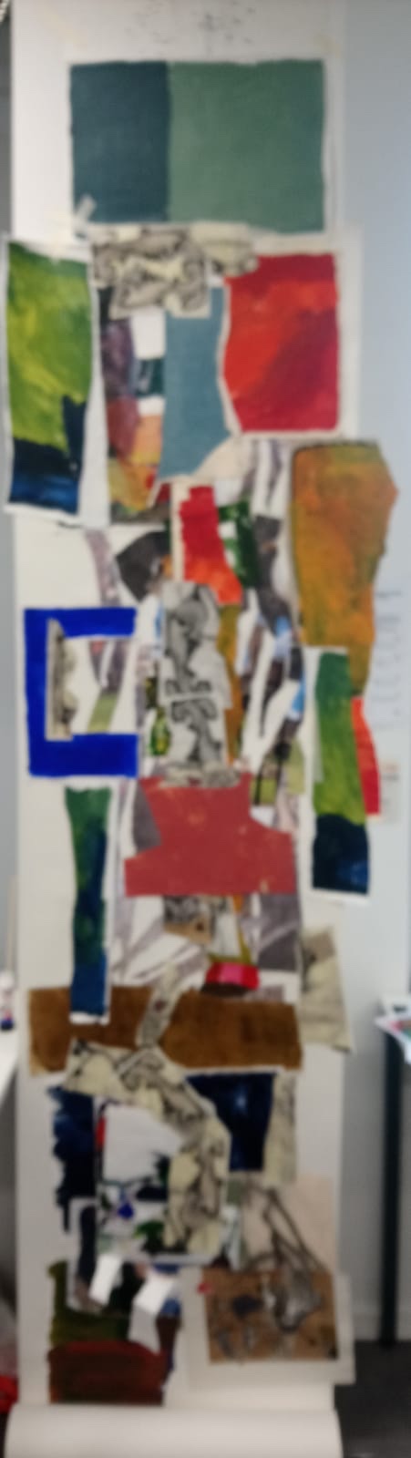 Luiser calmly said I know what we are doing……thank goodness one of us does……I took her tearing/ collage she took my threes and storytelling and we met in the middle to explore our response to our trips around London, its Commercial/financial hub, it’s Spiritual/moral hub with connections to here and now. Tearing through time (thank you Gary) to reveal and respond in the form of a small Video, and various art pieces that we are both working on independently and collaboratively.