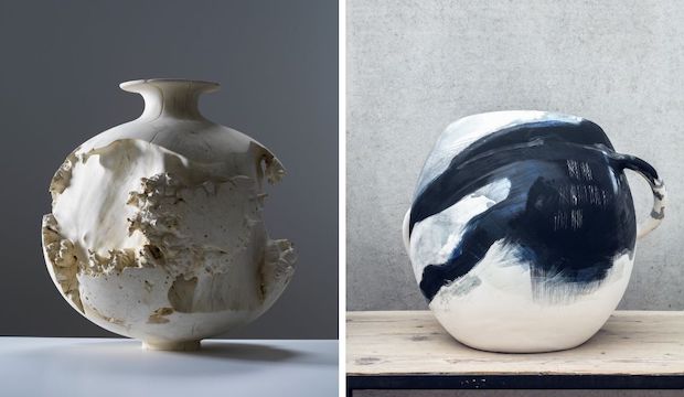 Left: Eleanor Lakelin, courtesy of Sarah Myerschough. Right: Benjamin Poulanges, courtesy of Galerie Negropontes