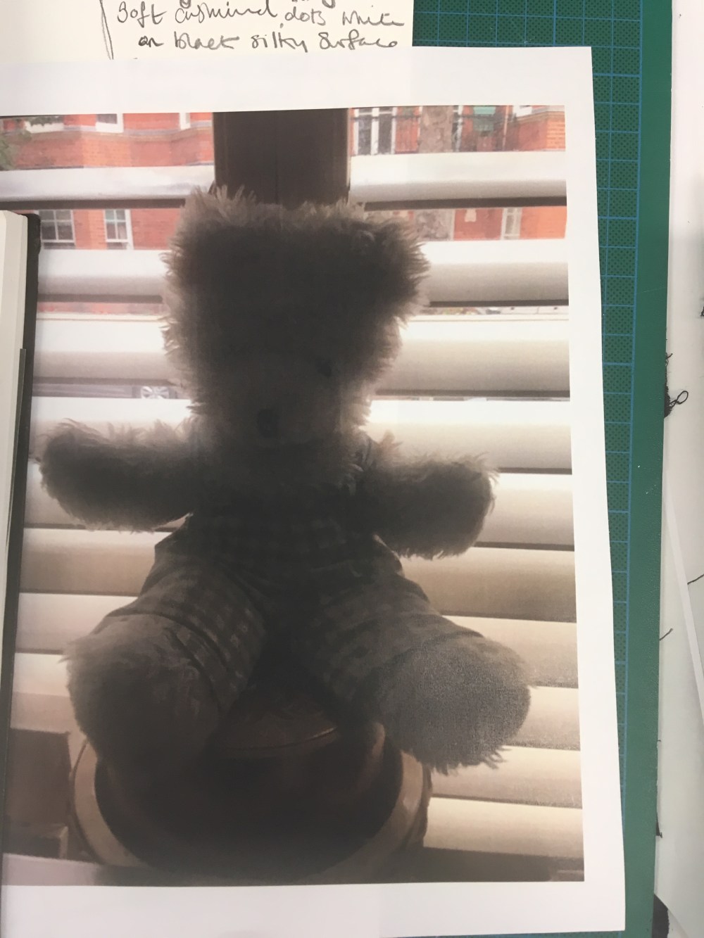 Id sneaked downstairs to get the teddy I missed it. The telly was on and she was in the kitchen. I snuck my hand through the gap on to the sofa where the needle basket lay, teddy and black and white fabric topped the pile with the button on top I grasped the button and dragged it through the gap. Pain shot through my body. I looked, I felt surprised at the bright red blood, I could hear my mother’s voice, maybe on the phone, over the tv presenters voice quietly talking in the background.