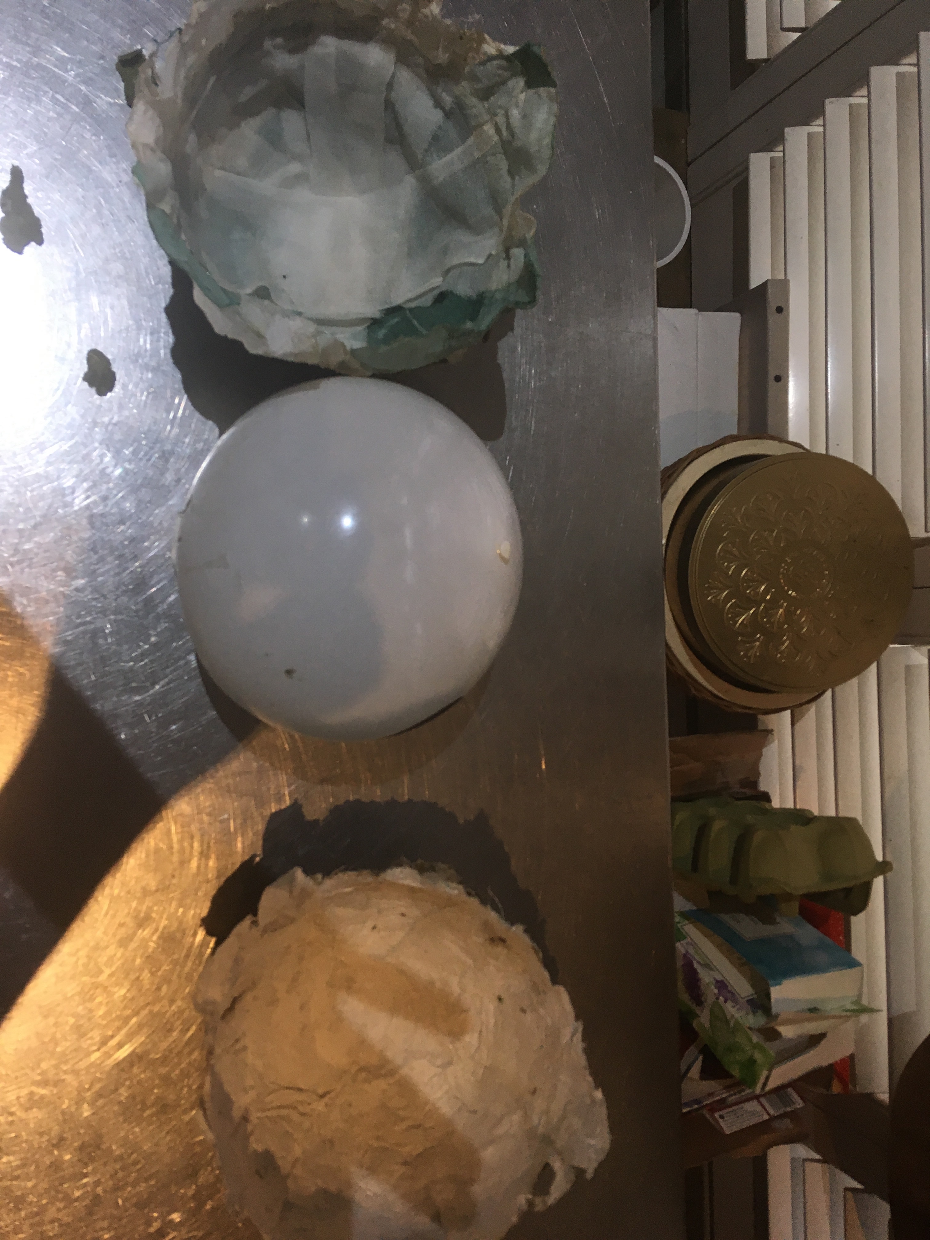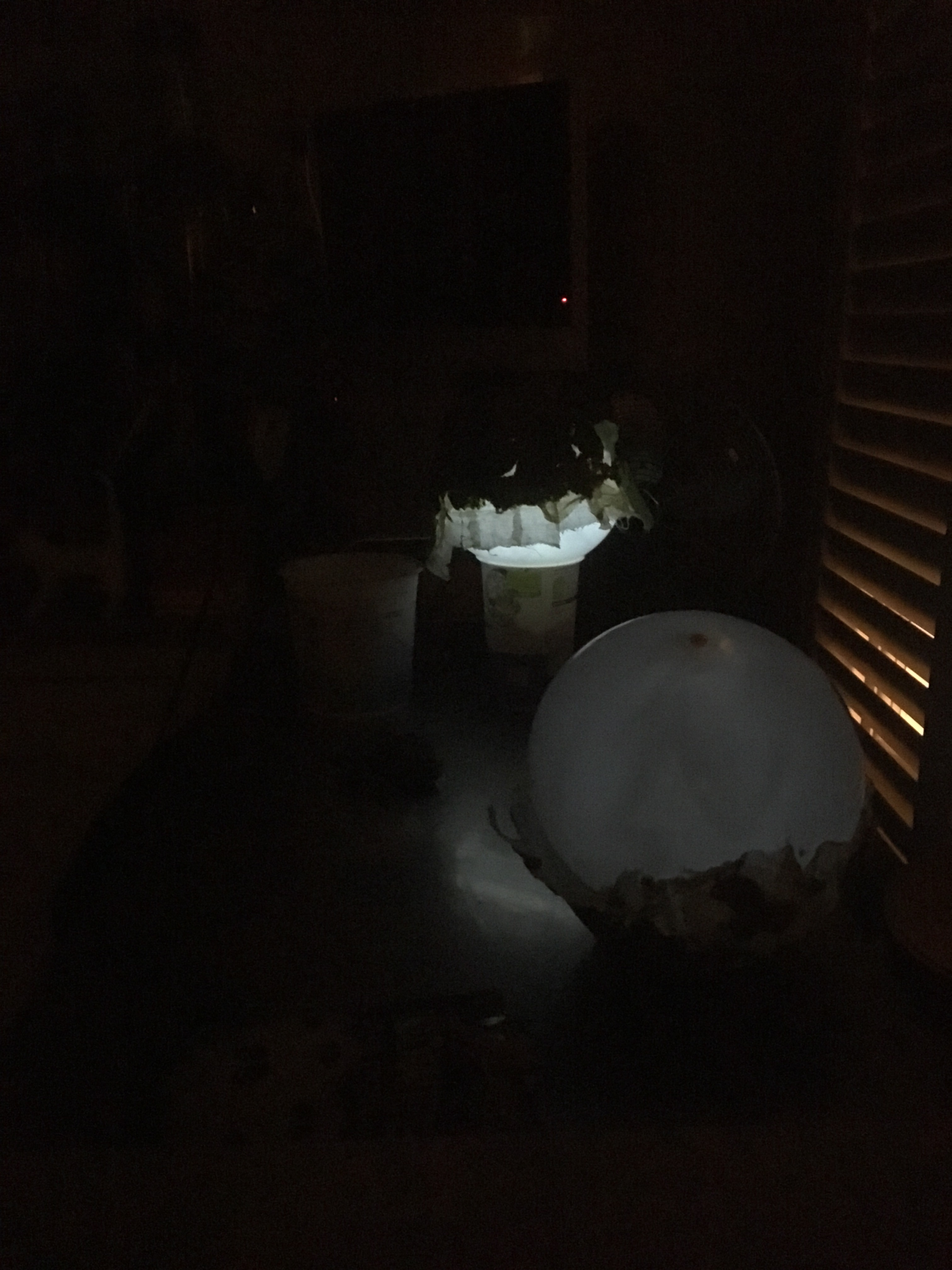 I’m having so much fun with these light up balloons as it starts getting dark they change. They are lit from within and shine out. Their surface texture becomes less apparent the gaps and shapes take over.