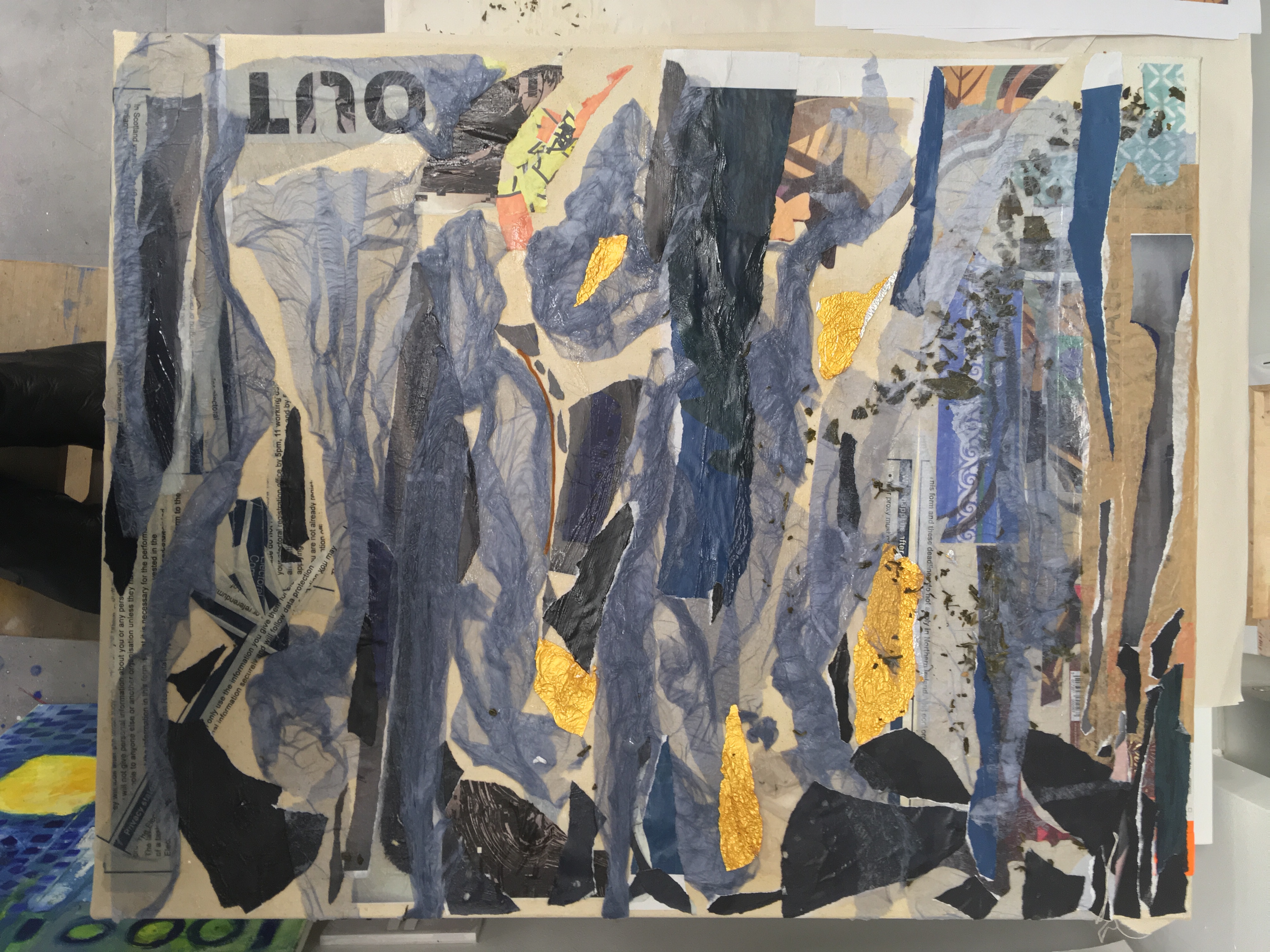 I researched and gathered picture from artists who also look at surfaces as part of their practice. I visited the Mark Bradfords exhibition and explored his working practise which involves using materials that directly connect to his project as a starting point. He then layers and excavate revealing shapes, patterns and connections revealing his comments on his project. He zooms in and zooms out until he has a cohesive vision laid out/constructed before him.