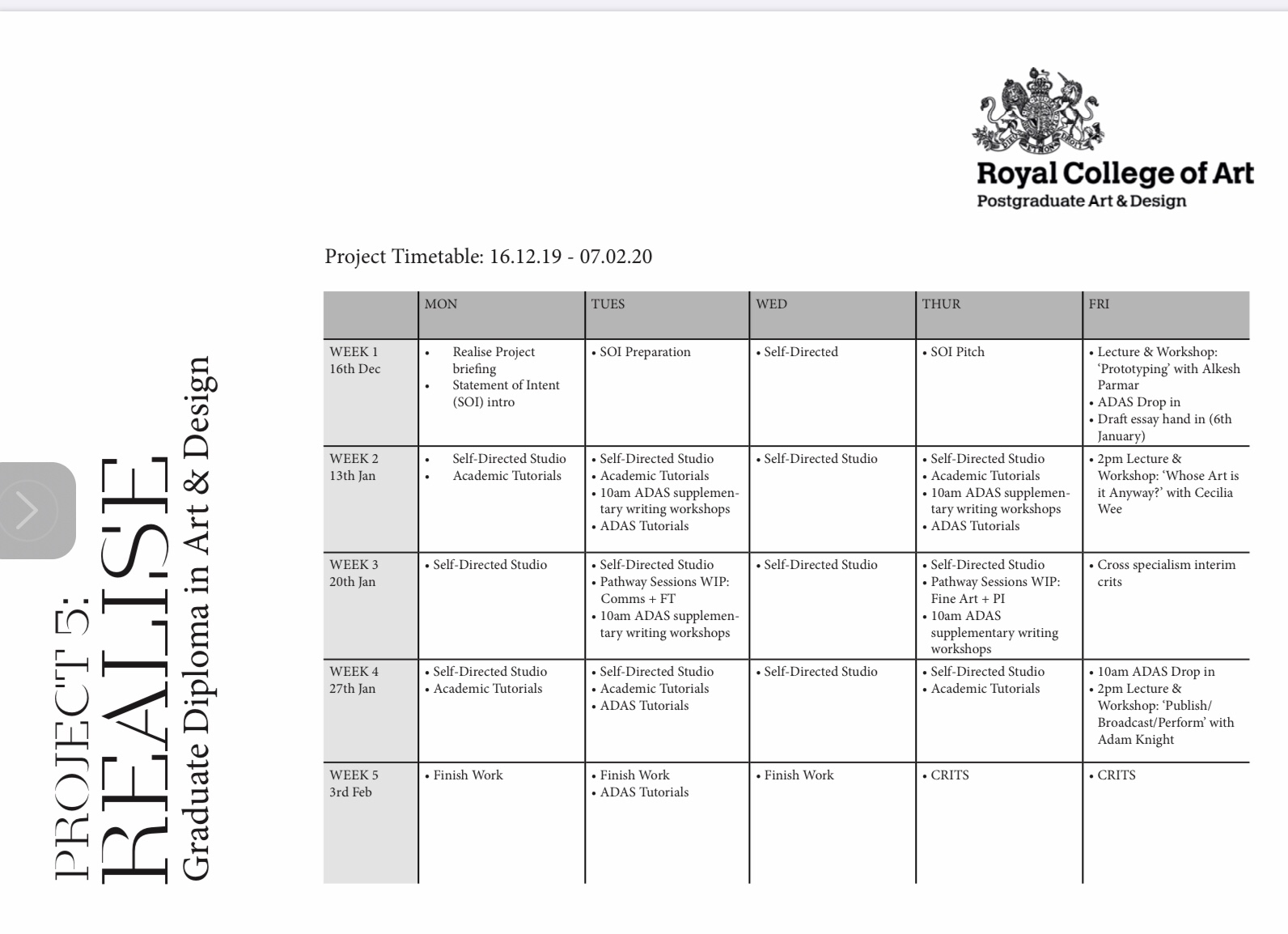 Realise, Um. Thoughts. Week 23: Planning Realise. The Time Table. Posted by Sarah Chalkie Cloonan on December 20, 2019December 26, 2019 Published by Sarah Chalkie Cloonan Fine Artist / Educator/ Researcher. Looking for magic & meaning through making. View all posts by Sarah Chalkie Cloonan