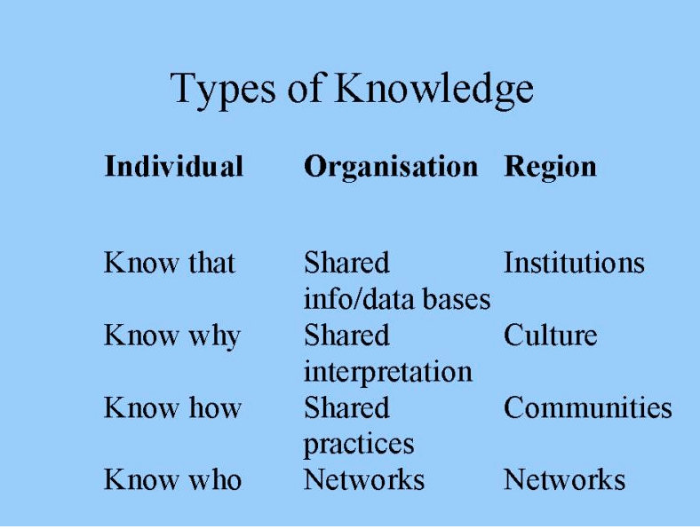 What are the 4 types of knowledge?