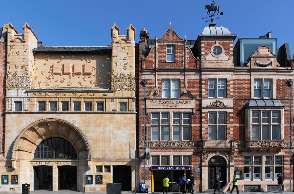 This is the facade of the Whitechapel Gallery today in 2022. It shows the 2012 addition of Rachel Whiteread’s ‘The Tree of Life’ – an Arts and Crafts motif symbolising social renewal through the arts (Whitechapel, 2022).
